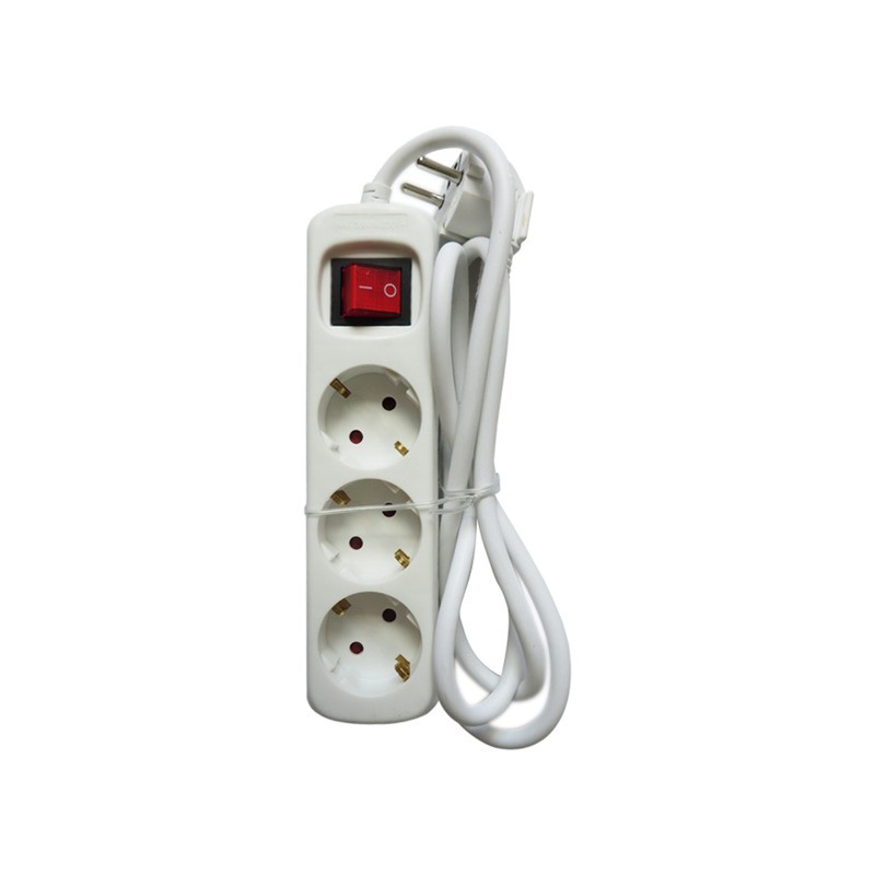 base de 3 enchufes con interruptor de 3 metros de cable BLANCA