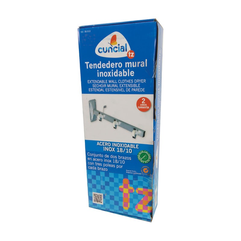 tendedero mural inoxidable CUNCIAL. 6 poleas+tacos y tornillos incluidos.